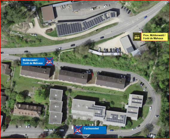 - Fuchsenried: nicht bedient : bitte die Haltestelle Mahlenwald (verschoben an der Burgergemeinde Platz) benutzen
