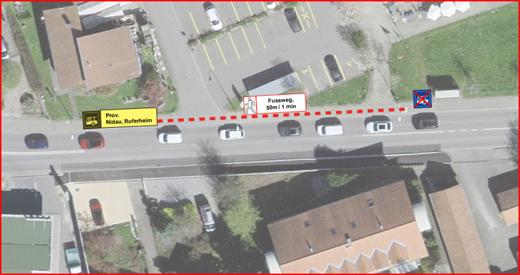 En raison de travaux, l'arrêt Nidau, Ruferheim (direction Centre hospitalier) est déplacé de 50 m dès lundi 26 janvier 2026, 7h30, et jusqu’à fin mars 2026 (voir plan ci-dessous).